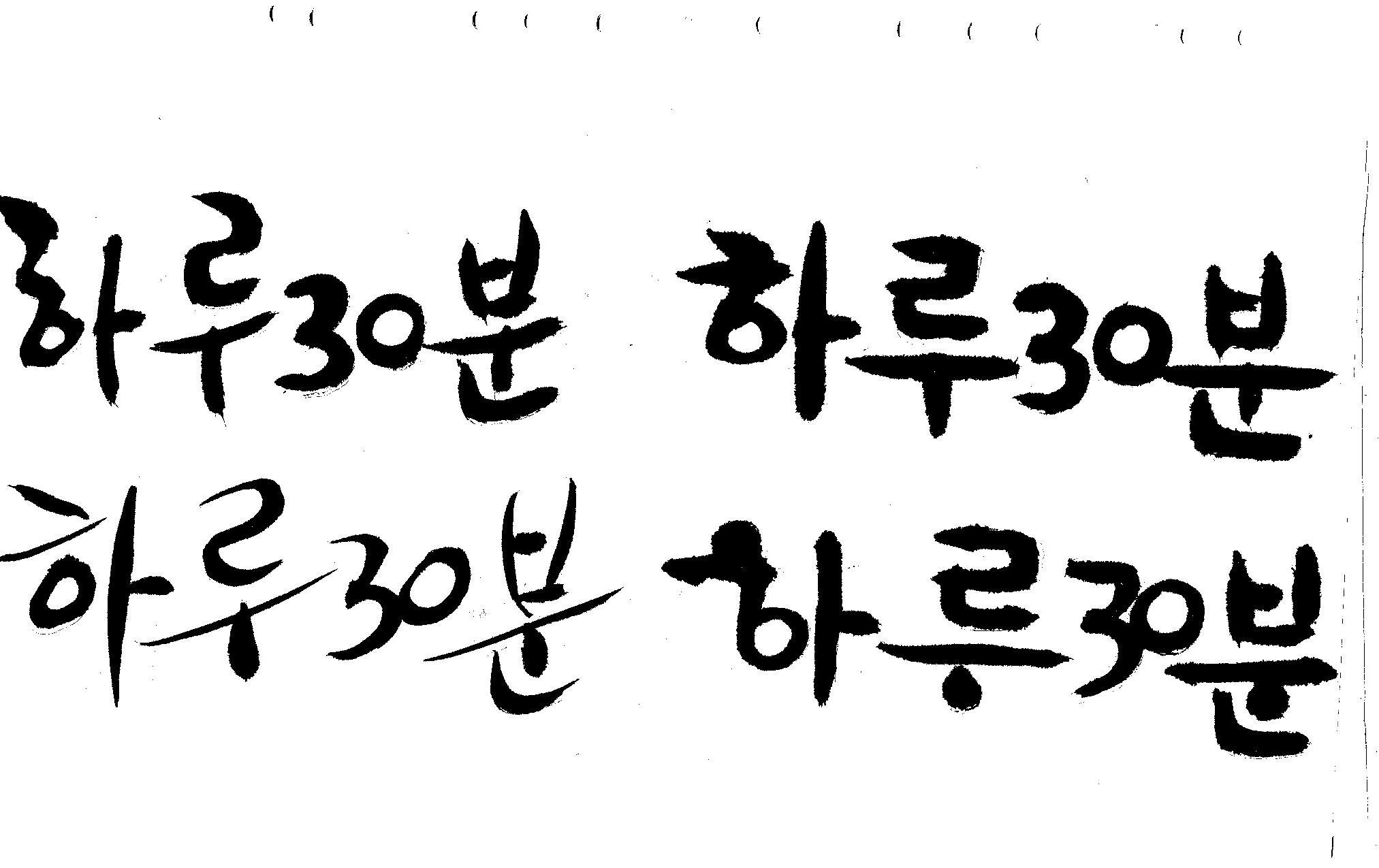 캘리부탁드려요 김철호 일반 0 6675 2008.12.31 13:43 > > 하루30분 <------- 이걸 캘리로 부탁드립니다 > 희망찬 새해 되세요... 스캔이 삐딱하게 되어 손좀 보셔야겠네요..